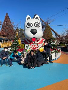 今年度の遊園地グループ外出は、よみうりランドへ行ってきました。東京都をちょこっと飛び出した神奈川県なので、電車での乗り換えも2回あり、それなりに長い道のりでしたが、スムーズに各路線を乗り継ぎ、京王よみうりランド駅からは、最初のアトラクションといっても過言ではない、遊園地前までのゴンドラに乗って到着しました。ゴンドラはあくまでも移動手段ですが、高さもかなりあり、遠くには富士山、近くには紅葉や、遊園地を見下ろす事ができ、とても爽快、高いところが苦手な人には、ちょっとドキドキの空の旅を楽しめました!よみうりランドに到着してからは、絶叫系が好きな人、ゴーカートの運転がしたい人、かわいらしい乗り物に乗りたい人、クレープを食べたい人、などそれぞれの希望にそって、めいいっぱい楽しみました!